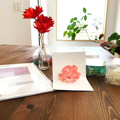 ¥1,000 (税込み、教材費、お茶代込み) 折花を使ったポップアップカードや花束、折花ボックスがお作りいただけます。 折って形にするシンプルなワークショップです。 ワークショップは1名様から随時受付けています。 ご希望の日時をお知らせくださいませ。 |