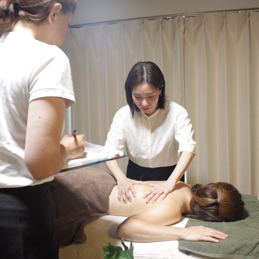 試験終了後、苦手な部位の復習とtomari木流トリートメントのポイント解説と練習をじっくりと行います! |